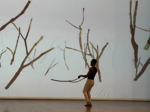 The performance uses the trope of the divining rod—a classically ‘Y’ shaped branch used by a dowser to locate ground water. Drawing upon this unscientific method that is dependent upon the “divine” energies of the dowser, the work intimates that power, control, and folly are in the hands of individuals making far-reaching decisions about water access and distribution.